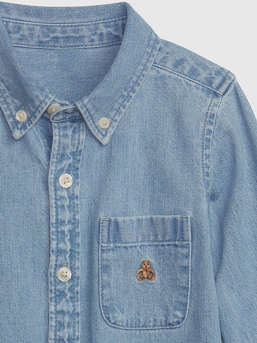 - Fabricado com responsabilidade: Esta camisa jeans faz parte do nosso programa Washwell, que utiliza pelo menos 20% menos água em comparação com os métodos de lavagem convencionais. Economizamos mais de um bilhão de litros de água com o Washwell desde 2016.