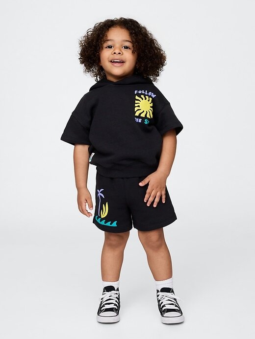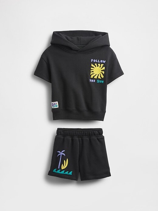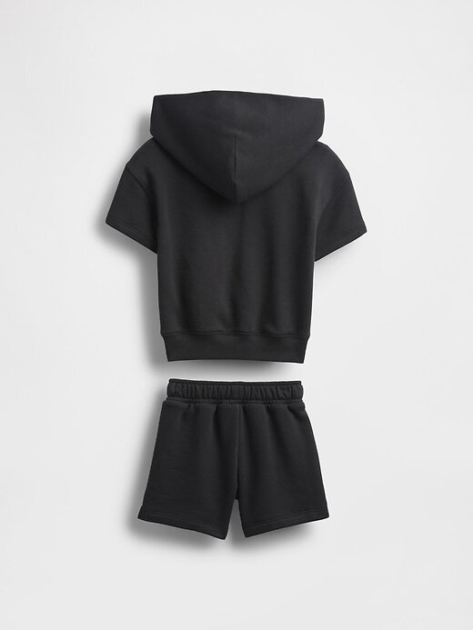 - Conjunto de moletom com capuz e shorts de lã macia de algodão misto.