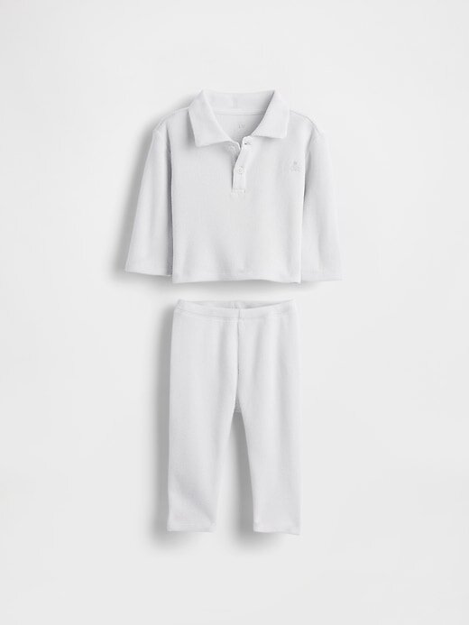 - Conjunto de camisa polo e calça de malha waffle supermacia e aconchegante.