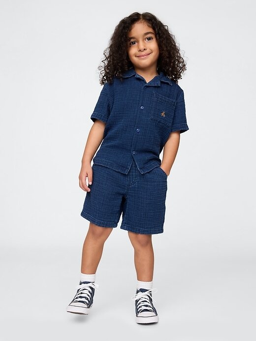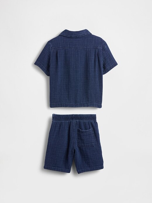 - Conjunto de camisa de acampamento jeans de gaze macia e amassada e shorts.
