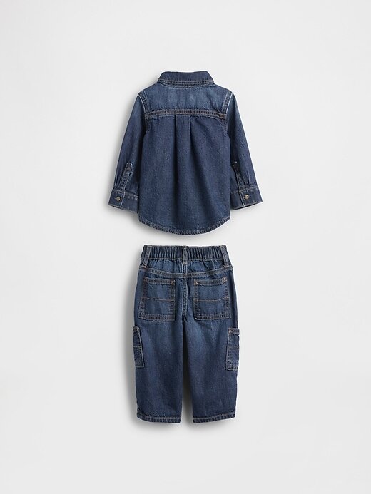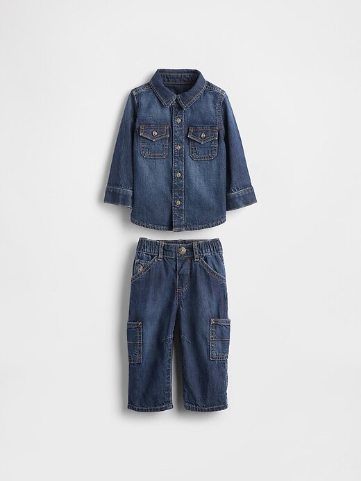 - Conjunto de camisa jeans autêntica sem elasticidade e calça jeans.