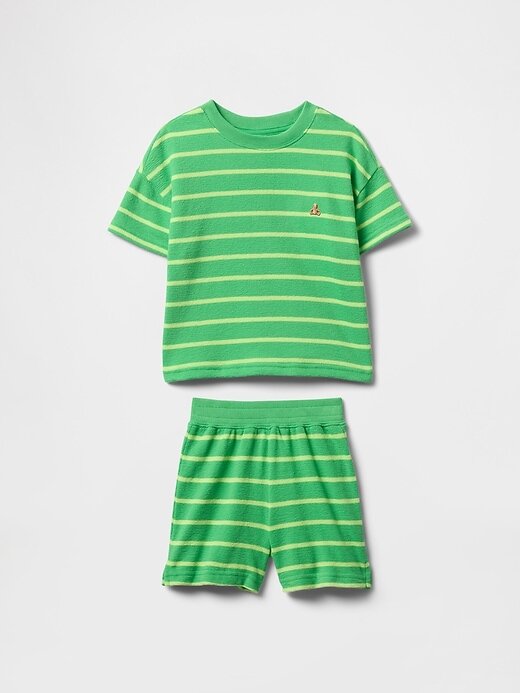 - Conjunto de camiseta e shorts de moletom em jacquard macio e texturizado, em mistura de algodão e felpa.