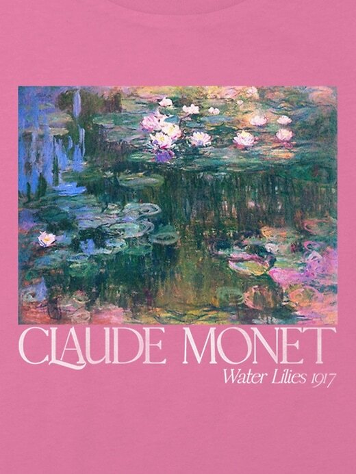 - Aprecie a arte de Claude Monet com esta camiseta gráfica destacando uma pintura de nenúfar.