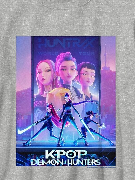- Gráfico K-Pop Demon Hunters oficialmente licenciado na frente.