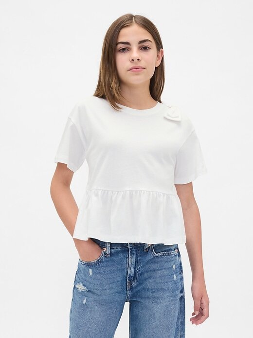Camiseta infantil peplum com laço