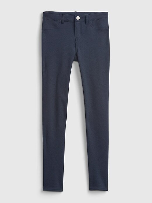 - Botão no centro da frente (os tamanhos 4 a 8 têm fecho de gancho e barra sob o botão de pressão falso para facilitar a colocação e retirada), braguilha com zíper.
