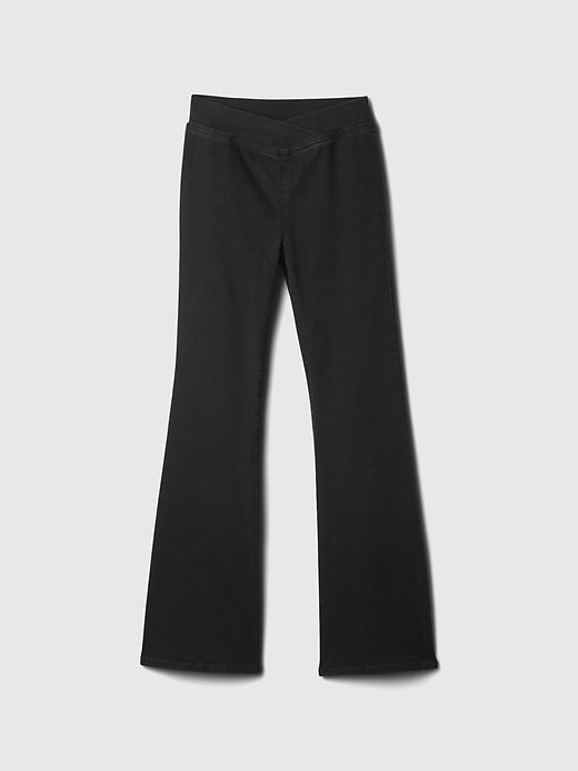 - Calça jeans flare macia e elástica.