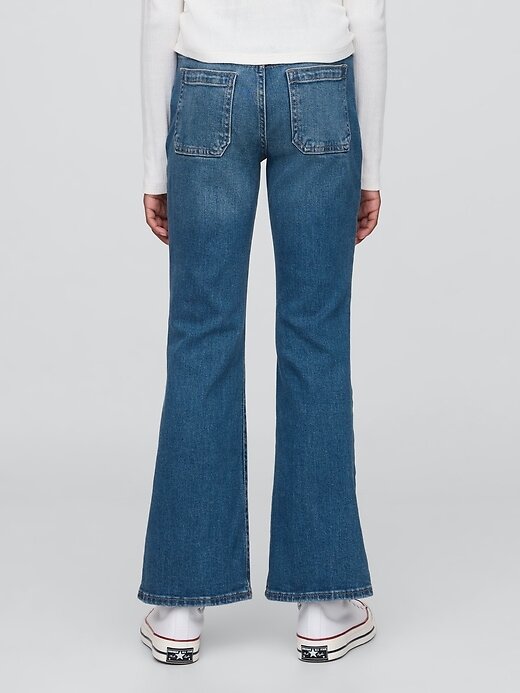 - Botão no centro da frente (os tamanhos 4 a 8 têm fecho de gancho e barra sob o botão de pressão falso para facilitar a colocação e retirada), braguilha com zíper.