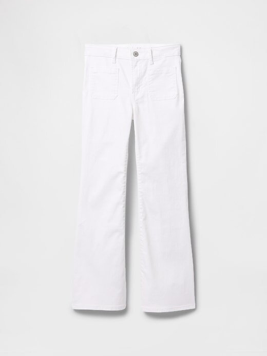 - Calça jeans flare com elasticidade reduzida.