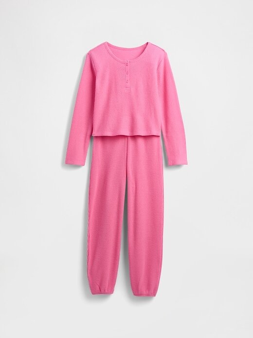 • Conjunto de pijama de malha waffle macia e calça para dormir.