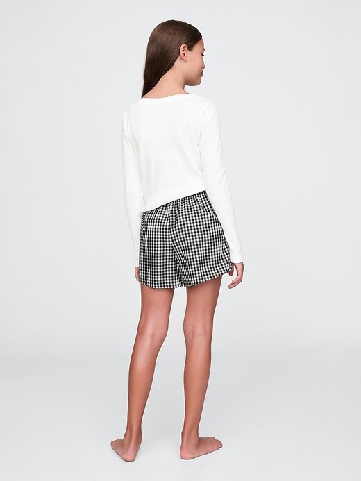- Este par de shorts de pijama é feito com 100% poliéster reciclado. Em comparação com materiais virgens, o uso de materiais reciclados ajuda a reduzir o uso de recursos e o desperdício.