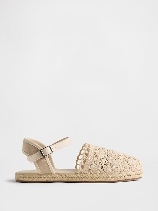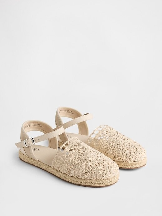 - Este par de sandálias alpargata é feito com cabedal têxtil.