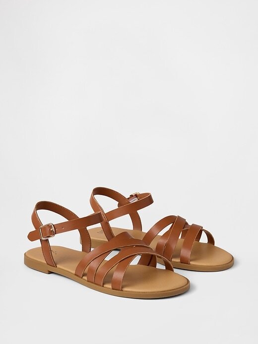 - Estas sandálias são feitas com cabedal de couro vegano.