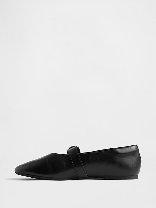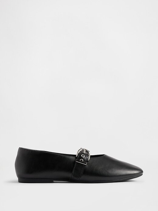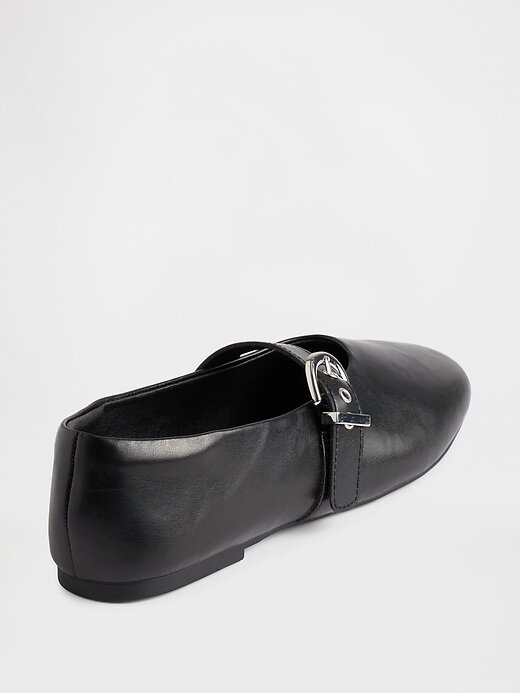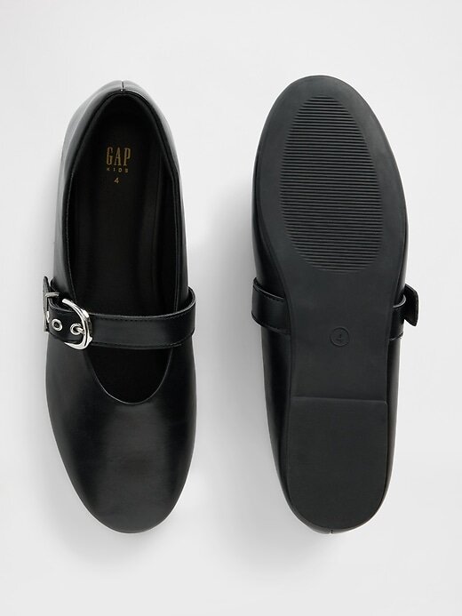 - Tira Mary Jane com fecho de fivela de metal na parte superior.