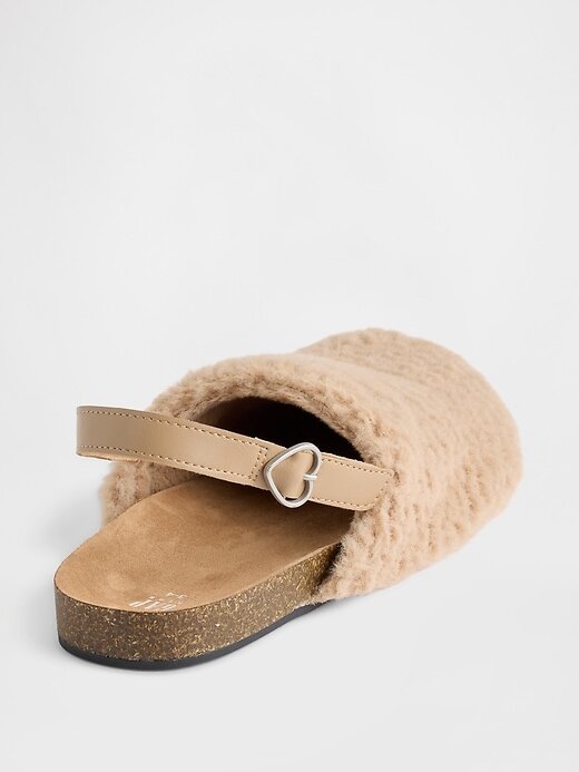 - Tira traseira ajustável com fecho de fivela em formato de coração.