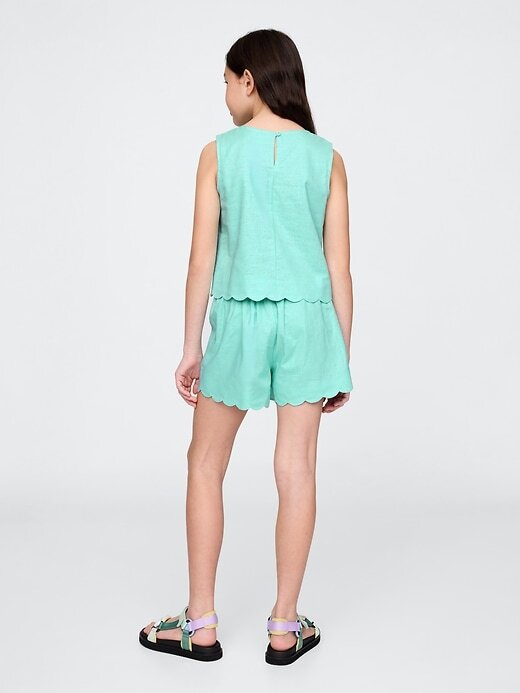 Saia-calça infantil de linho e algodão com vieiras