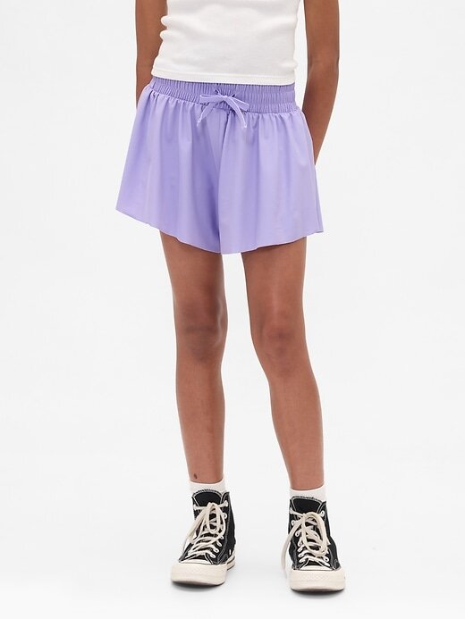 Shorts de corrida infantil com bainha borboleta