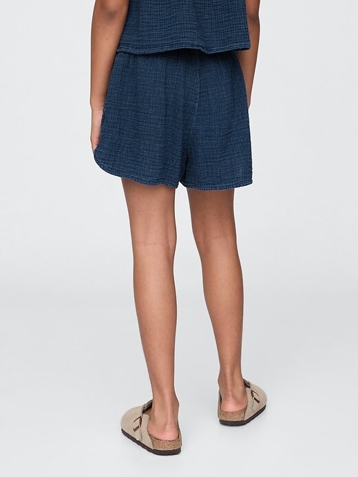 - Shorts jeans de gaze macia e amassada, fáceis de vestir.
