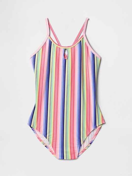 - Este maiô é feito com 82% de poliéster reciclado. Em comparação com materiais virgens, o uso de materiais reciclados ajuda a reduzir o uso de recursos e o desperdício.