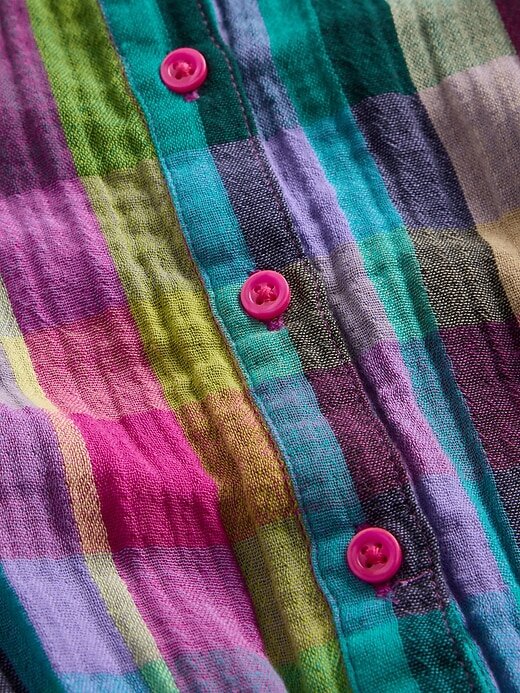 Textura macia de gaze com o dobro de vincos. Feito para a sensação do verão em 100% algodão respirável.