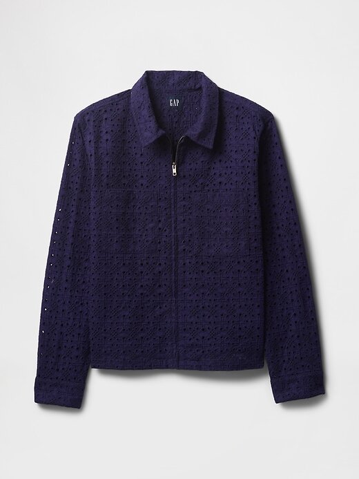 - Camisa de popeline de algodão macio com ilhós e zíper completo.