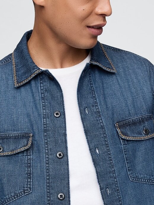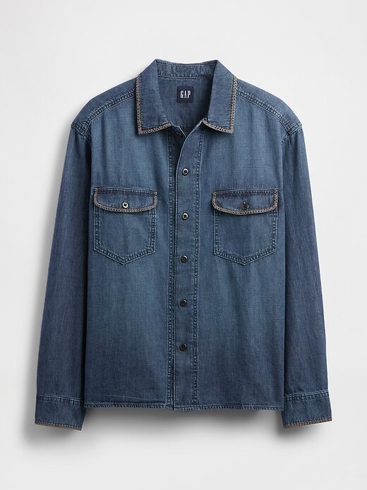 - Camisa jeans autêntica com botões e sem elasticidade.