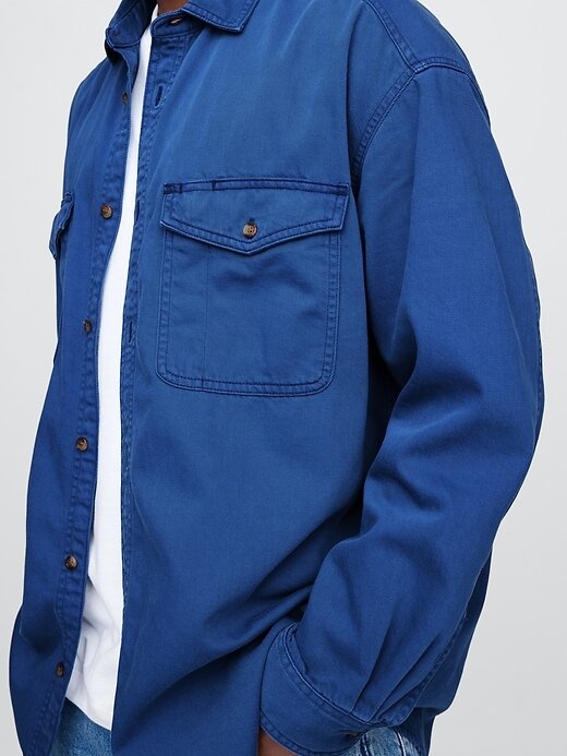 - Mangas compridas com punhos abotoados.