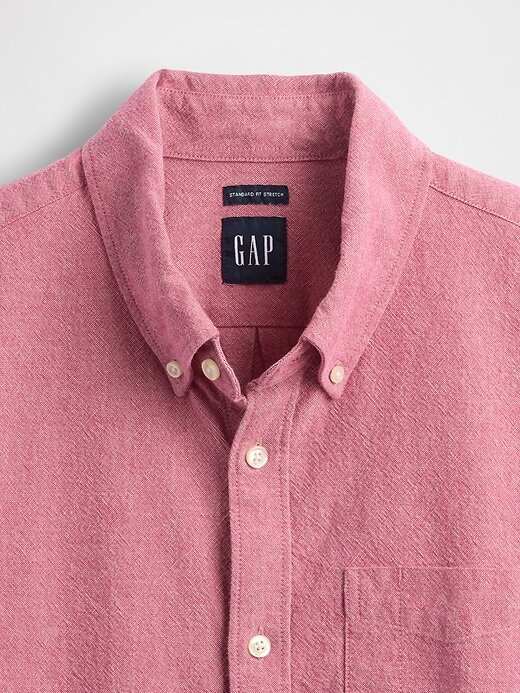 • As modelos têm 1,85 a 1,88 m (6’1″–6’2″) com cintura de 79 cm (31″) e costura interna de 81 a 84 cm (32 a 33″) e estão usando o tamanho M da Gap.
