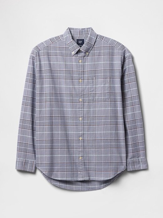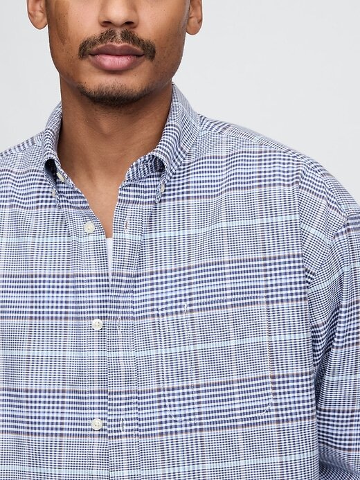 - Camisa Oxford oversized de algodão elástico com trama lisa.