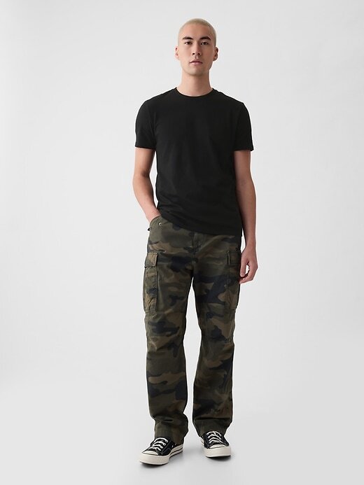 • As modelos têm 1,85 a 1,88 m (6’1″–6’2″) com 79 cm de cintura e 81 a 84 cm de costura interna e estão usando tamanho M da Gap.