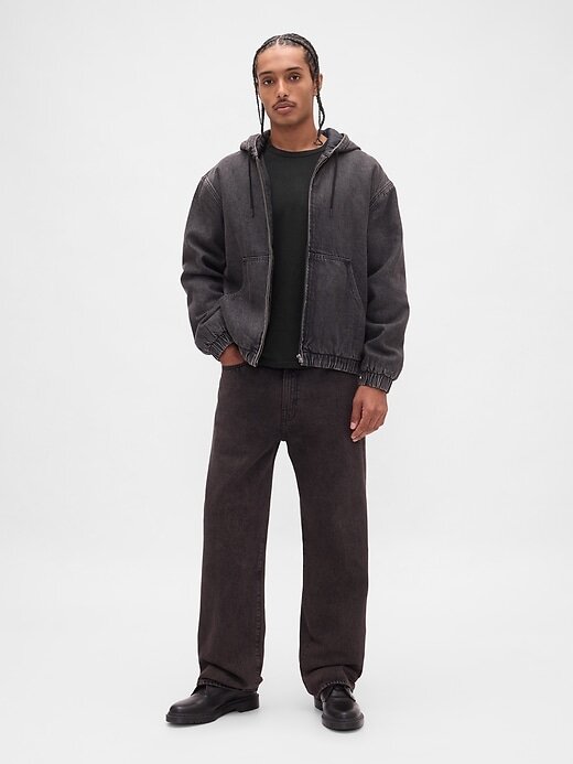 • As modelos têm 1,85 a 1,88 m (6’1″–6’2″) com 79 cm de cintura e 81 a 84 cm de costura interna e estão usando tamanho M da Gap.