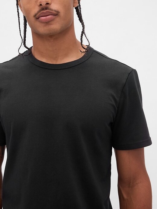 • Camiseta slim de algodão orgânico, macia e elástica.