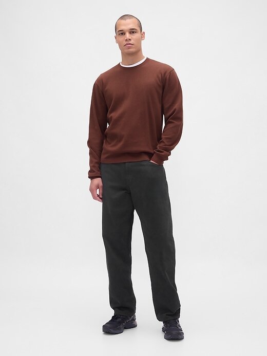 - Os modelos têm 1,85 a 1,88 m (6’1″ a 6’2″) com cintura de 79 cm (31″ e 32–33″ (81 cm–84 cm) de costura interna e está usando tamanho M da Gap.