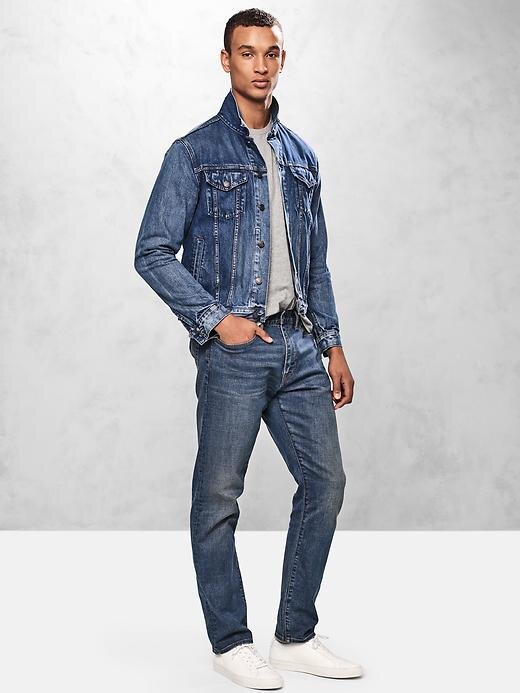 - Elástico: GapFlex Stretch médio. Feito para flexibilidade e facilidade o dia todo. Parece autêntico. Parece usado. Não estica.