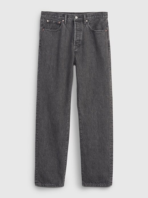 - Visual: Um jeans clássico de cinco bolsos em uma lavagem preta.