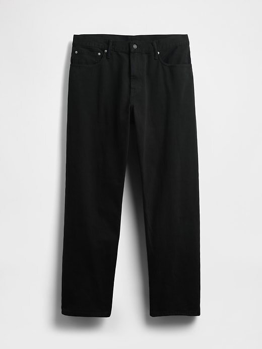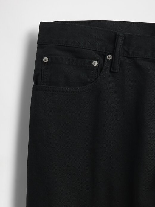 - Visual: Jeans de cinco bolsos com lavagem preta.