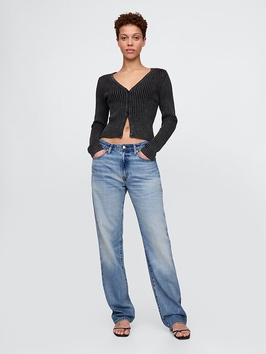 - Algodão mais sustentável: Este par de jeans é feito com 5% de algodão reciclado. Em comparação com materiais virgens, o uso de materiais reciclados ajuda a reduzir o uso de recursos e o desperdício.