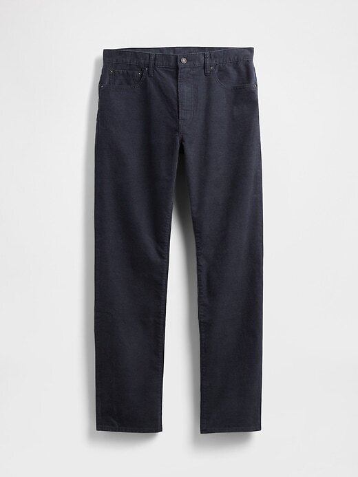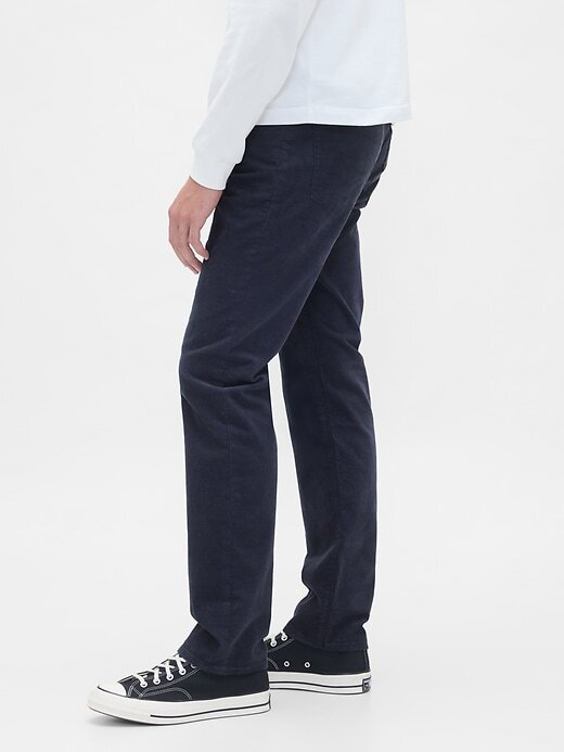 - Calça reta autêntica de veludo cotelê de algodão com elasticidade reduzida.