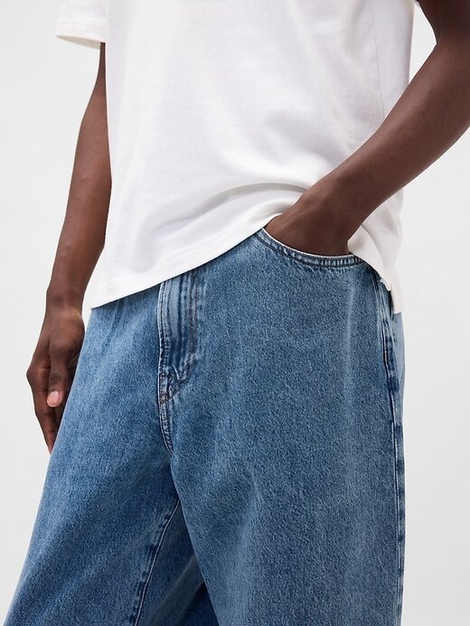 • Ajuste: Extra espaçoso no quadril e na coxa. Feito com uma perna larga e ligeiramente afunilada que se sobrepõe aos seus sapatos.