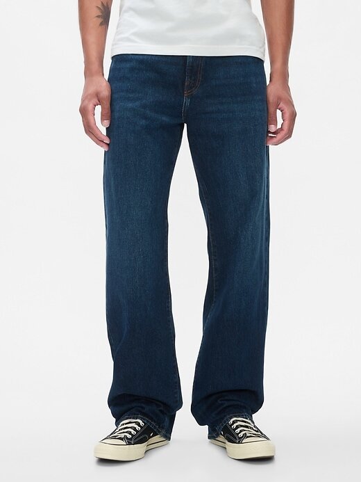 - Ajuste: Relaxado no quadril e na coxa, com perna solta e reta. Feito com uma costura interna mais longa que se ajusta aos seus sapatos.