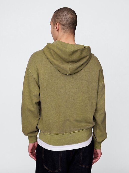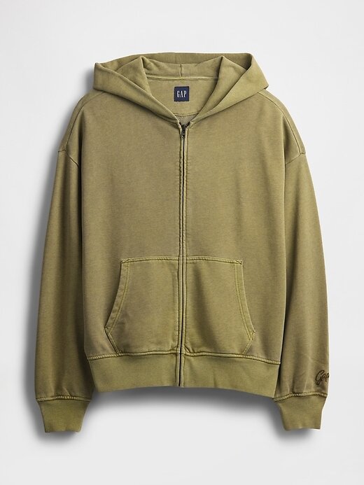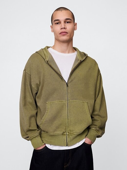 • Moletom com capuz grande, de algodão e lã macia e pesada, com zíper completo.