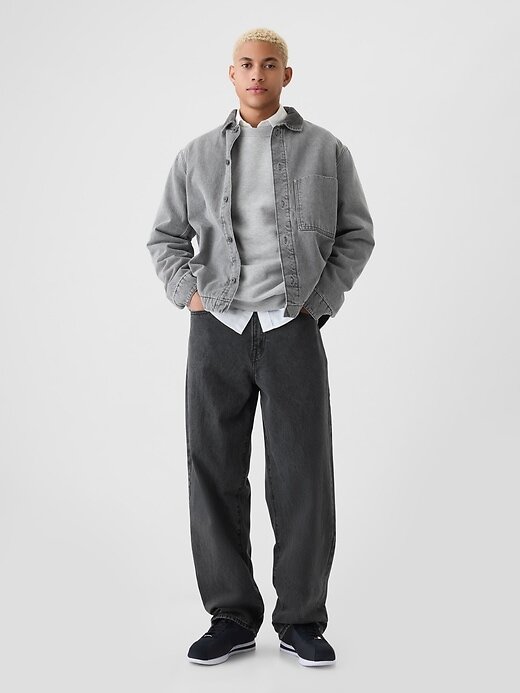 • As modelos têm 1,85 a 1,88 m (6’1″–6’2″) com 79 cm (31″) de cintura e 81 a 84 cm (32 a 33″) de costura interna e estão usando tamanho M da Gap.