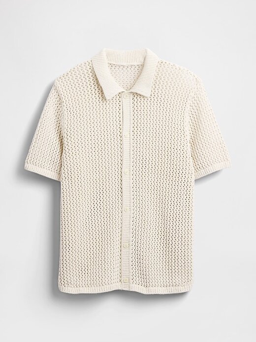 - Camisa suéter de malha texturizada de algodão macio.