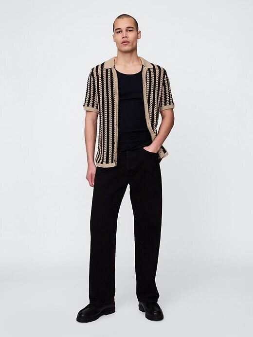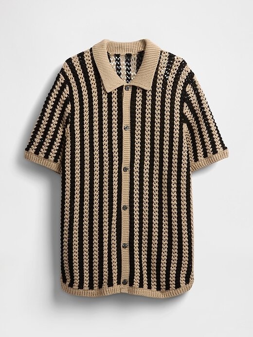 • Camisa suéter de malha texturizada de algodão macio.