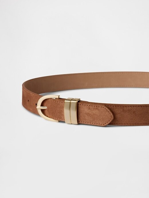 - Este cinto é feito com cabedal de camurça vegana.