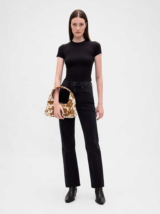 Mini bolsa larga com estampa de vaca e pelo de bezerro