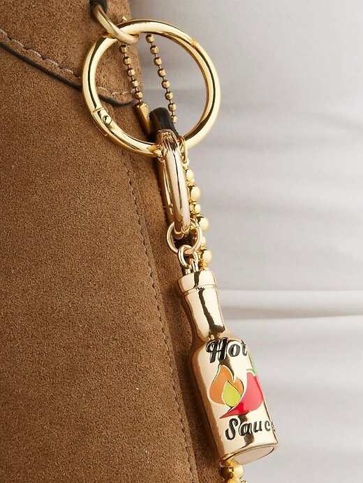 - Prenda este pingente para bolsa de molho picante em sua bolsa em homenagem ao seu condimento picante favorito.