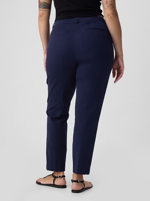 - Calças macias de algodão e elastano com elasticidade bidirecional.