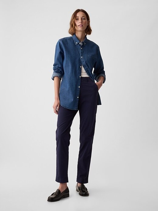 • Calça cáqui macia de algodão elástico com corte slim.
