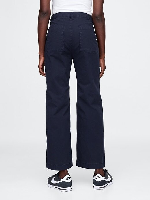 Calça cáqui de perna larga com cintura alta e tornozelo
